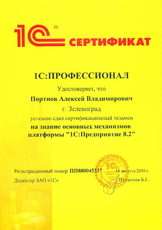 Сергей Шимков успешно сдал сертификационный экзамен на знание возможностей и особенностей применения типовой конфигурации "Управление торговлей" системы программ "1С:Предприятие 8"