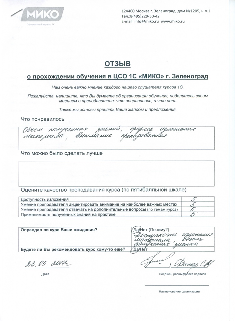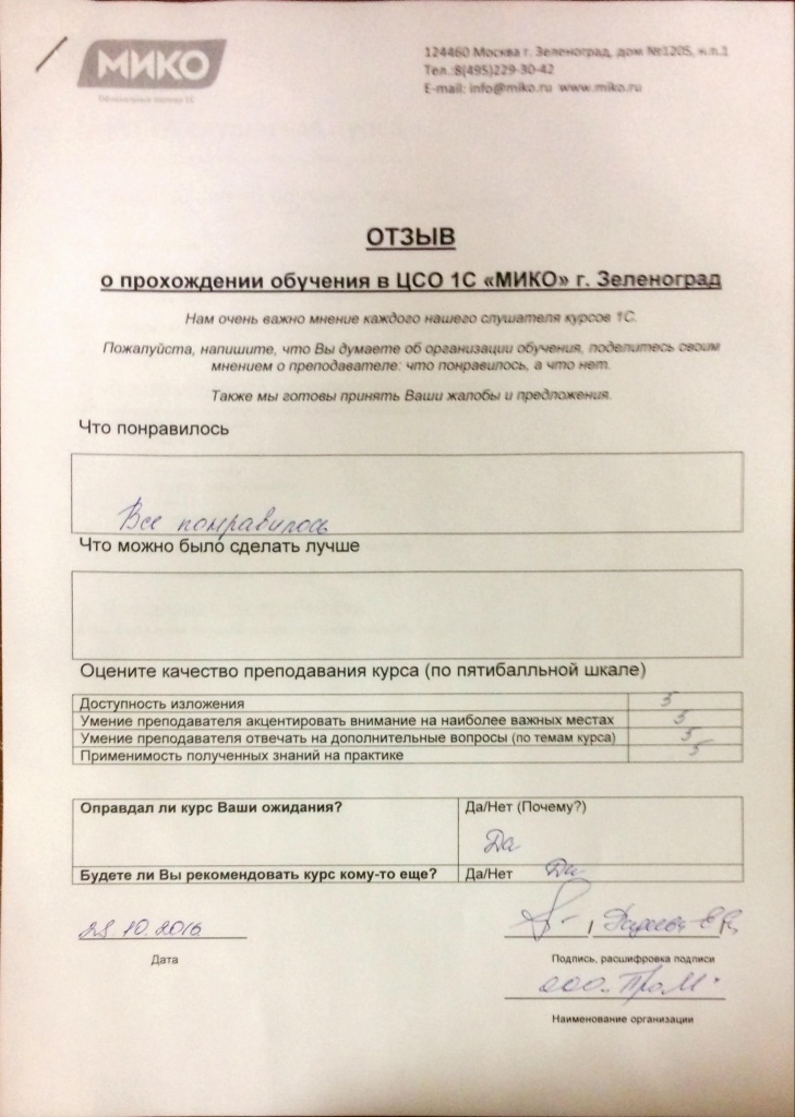 Приходный кассовый ордер