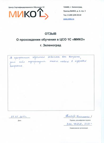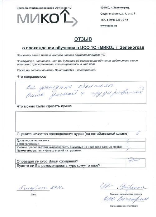 | По окончанию обучения | | слушателям выдается Свидетельство фирмы "1С" о прохождении данного курса. |